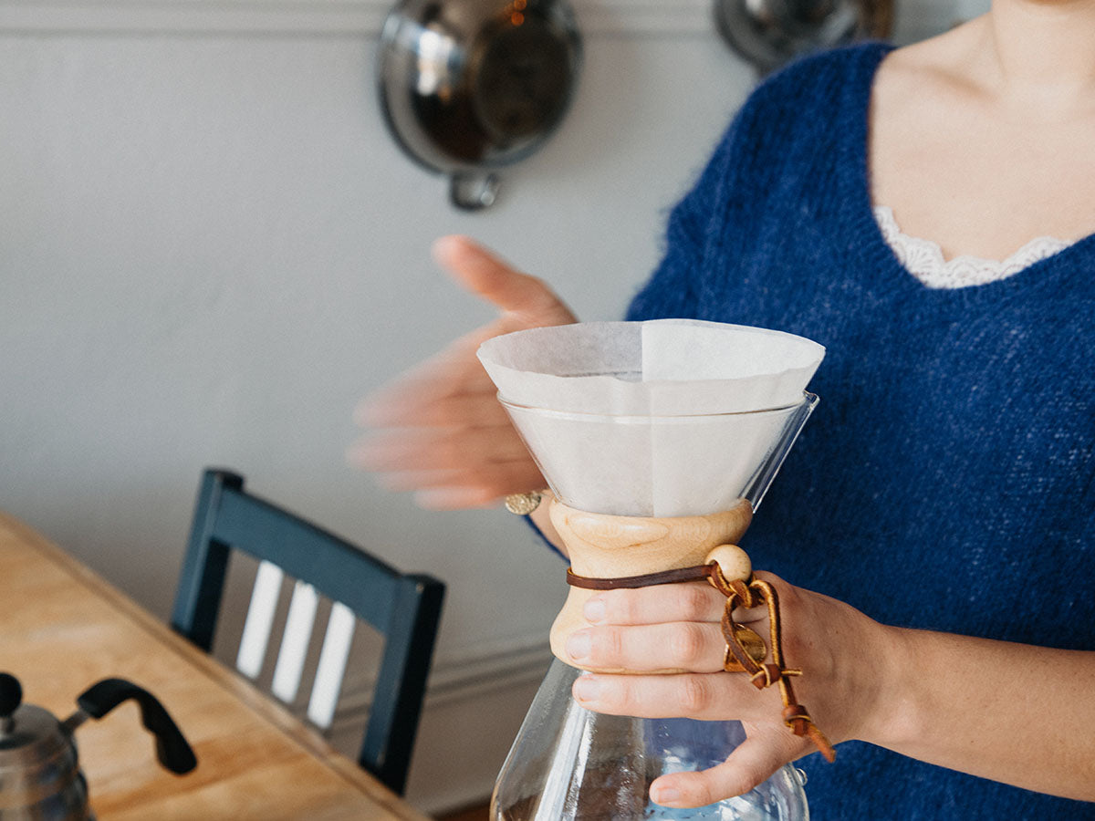 With its timeless design created in 1941, the Chemex looks both simple and very elegant on a kitchen counter. Its thicker filter produces a clear and complex cup where it is possible to distinguish the most delicate notes of a coffee.